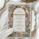 Embrace the timeless elegance of the Art Nouveau era with this beautifully crafted wedding invitation. The front of the invitation features a harmonious blend of blush pink and sage green floral arrangements, encircling a monogram that elegantly combines the couple's initials in a gold-tone. On the reverse, the invitation unfolds a stunning tableau of rose pink, olive green, and earthy tones, detailed with an intricate botanical design that frames the essential details of the special day. The use of classic Art Nouveau typography and subtle gold accents adds a touch of sophistication and charm, making this invitation perfect for couples seeking a blend of classic artistry and modern finesse for their wedding announcement.