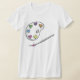 this is the fifth t-shirt from laurina.pastina clothing company. it features a pixelated paint palette on the front with neon, heart-shaped paint colors. the paint brush also has a bit of paint on it in the shape of a heart. the back detail is of the LP cassette logo pixelated in hot pink and "track five: art of loving, laurina.pastina" text. discover the art of love.