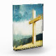 Festive Easter photo block painting with an empty cross and an angel.