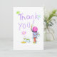 Customize this thank you note! A drawing of a little girl artist painting the word thank you which coordinates with Art Birthday Party invitations and also works on its own -