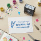 Positive encouraging message self inking stamp for art teachers. Fun stamp featuring painting brushes illustrations and three lines of text you can personalize. The sample lets the teacher praise the student's art and encourage them to keep creating. Change the name and the message to fit your own style of communication and praise.