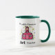 A mug for art teachers featuring the logo of The Pink Schoolhouse surrounded by pink, yellow, green, and black paint splatters. Text reads "World's Greatest Art Teacher." Many sizes and styles to choose from. Great gift for your favorite art teacher! Fill it with candy or supplies such as paint brushes, crayons, or drawing pencils!