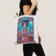 A lush fun art teacher tote bag in a tarot card style, with a painted skeleton in a colorful art studio. A fun style for the studio or classroom.