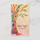 This unique business card is decorated with a mosaic Tree of Life design in rainbow colors on a coral beige background.