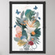 Art therapy daily framed art for a peaceful and cozy addition to your personal space. This image is a collage illustration of various flat lined abstract shapes and lines ,light shades of colors, flowers, and butterflies. Can be used in living rooms, bedrooms or small office spaces.