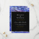 Art Wedding Black Blue Save the Date Invitations. Customizable white, gray and antique gold colored text on black. Decorated with printed extracts of original fine artwork, Abstract in Blues, painted in oils with brush and knife by living fine artist. Artwork features shades of white, blue, navy, ultramarine, purple, violet, and mauve dancing together - back is perfect for framing after the wedding and a lovely way to share this gorgeous artwork with your guests. Visit our store, Austen & Grace, to view the full wedding suite and our growing range of designer paper and homewares. Please contact us if you require extra matching products or any assistance via the contact button or email directly at contact@austenandgrace.com