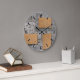 This wall clock has a modern abstract design with real (photographic) concrete textures. The clocknumbers are part of the design. Colors: gray, dark brown and terra cotta. It is possible to add text such as a name or monogram. The concrete textures come from the public domain: Free and premium concrete textures available at http://www.designpanoply.com.