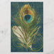 Artful and unique peacock theme matching accessory set. Features stylish, rich and luxurious artwork of a peacock feather detail in colors of cobalt blue, teal and celadon light green. Background in dark aqua blue with an antique wash and swirly design. © 2010 www.CustomInvitesOnline.com