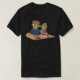 My 11 yo wore adult XL (5’7” 165#). The 8yo is small framed. She wore adult small and tied it in the back. Dark haired male wearing adult large and female wearing adult medium. Good quality dark Heather gray, Gildan brand shirt. -it was next up from basic choice and cost about $20 per shirt. Not too thick or thin. Washed and dried well, no major shrinkage. Not see-through. Can wear a bra under it fine. Screen print is just as shown and well done, front and back. They printed random cupcake image I downloaded from internet with no problems! Looked perfect! Front design was stock from zazzel.