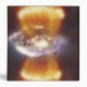 Artist concept of a galaxy inside of a glowing hydrogen blob featured with blobs.