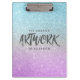 A girly blue and purple glitter, heart shaped personalized clipboard. This clipboard has the words, "The Amazing Artwork of" in a brush script font personalized with your name below. Customize the sketchbook with the name of your choice to make someone feel extra special. Great for using with copy paper to sketch on. Makes a fun gift for birthdays or for Christmas. Comes in a variety of colors. Designed for you by Blackberry Boulevard.