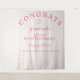 Arrived quickly and looked great! Had to steam out the wrinkles from shipping but it was easy to do! I added gold curtains to the sides to extend the photo backdrop area. I changed the color to royal blue! Perfect! The printing looked just like the photo online! Excellent job!