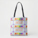 This all-over-print tote has a paint palette repeating pattern. The design says "Artist" in painted text with a row of paint colors and a brush.