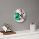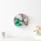 Wall clock with the image of green oil paint squeezed from a tube on to artist's canvas next to a sculpel and art brush. Customisable.