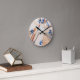Wall clock with the image of green oil paint squeezed from a tube on to artist's canvas next to a sculpel and art brush. Customisable.