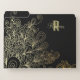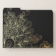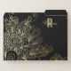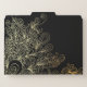Unique personalized file folder design featuring hand drawn doodles in gold on a black background with your name and monogram. The text is fully customizable.