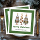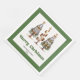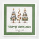 Modern Christmas dinner napkins featuring three minimalist watercolor Christmas trees in earthy green and gold with playful leopard pattern accents and hand-drawn lettering. A stylish choice for festive tables, these napkins are personalized with your custom name, adding a unique and elegant touch to your holiday dinner or Christmas party décor. 🎄✨