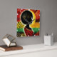 A striking wall clock displaying a bold African-inspired design, showcasing vivid patterns and colors contrasted with a silhouette image in silhouette, combining functionality with artistic flair.