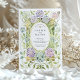 Celebrate your union with a true work of art. This breathtaking wedding invitation is inspired by the intricate beauty of Art Nouveau and stained glass design. The elaborate border features hand-painted watercolor dahlias with mosaic-like petals in a stunning palette of lavender, deep purple, and dusty teal blue. These intricate blooms are woven into a frame of swirling sage green leaves and elegant architectural elements with an antique gold and olive green watercolor wash. At the center, a classic oval space, outlined with a delicate faux gold dotted border, beautifully presents your wedding details. This invitation is perfect for an artistic couple or a wedding with a vintage, garden, or uniquely sophisticated theme.