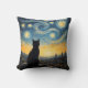 Artistic Black Cat & Celestial Town Decorative Throw Pillow