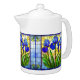 Enjoy tea in style with this stunning blue iris floral stained glass teapot, a unique piece that brings art into daily rituals.