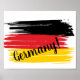 Poster print features artistic brushstroke version of the flag of Germany with customizable text overlay on black background.