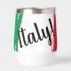 Stylish thermal wine tumbler features artistic brushstroke version of the flag of Italy with customizable text overlay