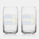 Trendy can glass set features artistic brushstroke version of the flag of Sweden with customizable text overlay .