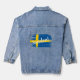 Stylish denim jacket features artistic brushstroke version of the flag of Sweden with customizable text overlay