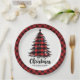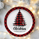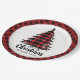Artistic Buffalo Plaid Tree Name Christmas Paper Plates