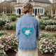 Elevate your wardrobe with this unique denim jacket showcasing a beautifully detailed heart and butterfly motif on a turquoise backdrop. The design blends whimsy and charm with classic denim, creating a standout piece that pairs effortlessly with jeans, dresses, or skirts. A perfect choice for those who love expressive and artistic fashion.