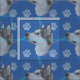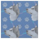 This is a fun, cute portrait of a Alaskan Malamute on a blue background with paw prints and tracks in gray, pink and blue. Design by Diane Blackman. The same design is available with other fun dog images.