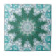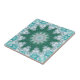Ceramic tile featuring an original geometric floral sea star design based on images of the beach and ocean. A beautiful nature inspired design in fresh mint and teal green colors. The image is large enough for both the small or large size tile and will fit nicely in a kitchen or bathroom.