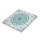 Ceramic tile featuring an original geometric floral sea star design based on images of the beach and ocean. A beautiful nature inspired design in fresh mint and teal with sand colors. The image is large enough for both the small or large size tile and will fit nicely in a kitchen or bathroom.