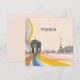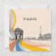 This artistic illustration features iconic landmarks of Paris, including the Arc de Triomphe and the Eiffel Tower, surrounded by colorful abstract lines. It captures the essence of the city's charm and vibrancy.