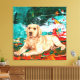 Artistic design features watercolor Labrador dog portrait on colorful abstract painted background. Great wall art gift for anyone who loves Labs