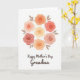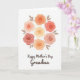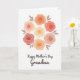 This greeting card features a circular wreath of stylized flowers centered on a bright white background, arranged like a gentle hug around the empty middle. The blossoms use soft, warm tones—coral, blush peach, and creamy yellow—so the whole ring feels like a quiet spring garden 🌼. Petals are layered with subtle swirls, giving each bloom a tender, unfolding look that suggests closeness and care ❤️. Slender leaves in a muted taupe shade weave between the flowers, adding calm contrast and a grounded, natural touch. Beneath the wreath, the message “Happy Mother’s Day Grandma” sits centered near the bottom of the front. The lettering is in a flowing cursive style and printed in a rich chocolate-brown color that stands out clearly against the white space. The layout stays open and airy, with generous margins that keep the wreath and the text easy to notice. Small taupe leaves peek between coral and peach flowers around the circular border.