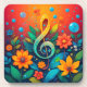 Artistic Musical Note Surrounded By Colorful Flowe Beverage Coaster
