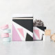 An artistic girly pink,black and white abstract triangles pattern.A unique modern pastel colors geometric striped design on white background. Get this geometrical creative design colors for her or anyone on any occasion.