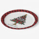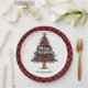 Artistic Plaid Tree Holiday Custom Name Paper Plat Plates