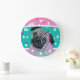 Artistic Pug Dog in pink and green turquoise Large Clock