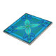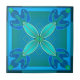 A modern geometric floral design tile for bathroom or kitchen in teal and blue green colors.