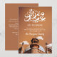 A unique Eid card featuring a terracotta-colored mosque dome against a warm orange sky. A classic and earthy design for traditional holiday greetings.