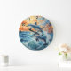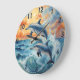Artistic Two Jumping Dolphins Sunset Ocean Large Clock