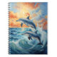 Artistic Two Jumping Dolphins Sunset Ocean Notebook