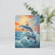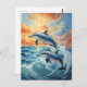 Artistic Two Jumping Dolphins Sunset Ocean Postcard