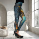 Leggings featuring an abstract veined design in teal blue and warm ocher.