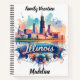 A colorful depiction of Illinois showcases a stunning skyline with iconic buildings and a serene water reflection, offering a sense of the state's charm and beauty.