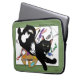 The sleeve is made of nice feeling material and seems very durable. I'm not sure how easy it'll be to clean, but the construction seems sound and the fabric is quick thick. I also like the double zipper. The printing is lovely and appears durable. The white on black contrast is nice, and the design very elegant.