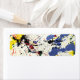 Blue, red, black and more colors of paint splatter, drips and drops cover this product.
